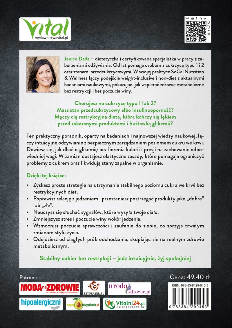 Autorka, Janice Dada, łączy holistyczne podejście z aktualnymi badaniami naukowymi oraz głębokim zrozumieniem psychologii jedzenia. W tej książce nie znajdziesz obietnic cudów ani presji na wagę. Poznasz skuteczne narzędzia, które pomogą ci ustabilizować poziom cukru bez liczenia kalorii. Efekt? Odzyskasz spokój, pewność siebie i świadomość, co naprawdę działa w twoim przypadku.